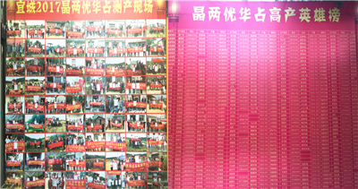 大會(huì)未始,門(mén)口的測(cè)產(chǎn)墻與高產(chǎn)榜就吸引了眾多農(nóng)戶(hù)駐足觀看。測(cè)產(chǎn)照片數(shù)量繁多,密密麻麻掛滿(mǎn)了墻。會(huì)場(chǎng)人聲鼎沸,到會(huì)的農(nóng)戶(hù)熱烈地討論著晶兩優(yōu)華占的優(yōu)質(zhì)性與豐產(chǎn)性。
